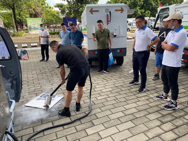 In this exhibition, our company has exhibited more than ten products of three series, including Ruibao y17 pure electric garbage sorting truck, Ruiqing S13 pure electric road sweeper and Ruibao q12l pure electric high-pressure washing truck. Because of the novelty and practicality of the products, arete booth is very popular.