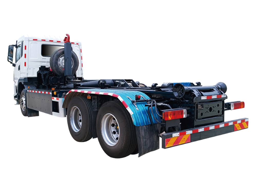 - 鉤臂系統(tǒng):拉臂裝置安裝在底盤上,其主要功能有拉箱、卸箱和卸料等,關(guān)鍵部位采用高強(qiáng)度精鑄件,提高安全性和延長使用壽命。結(jié)構(gòu)合理,外形美觀,大臂降落帶感應(yīng)裝置。